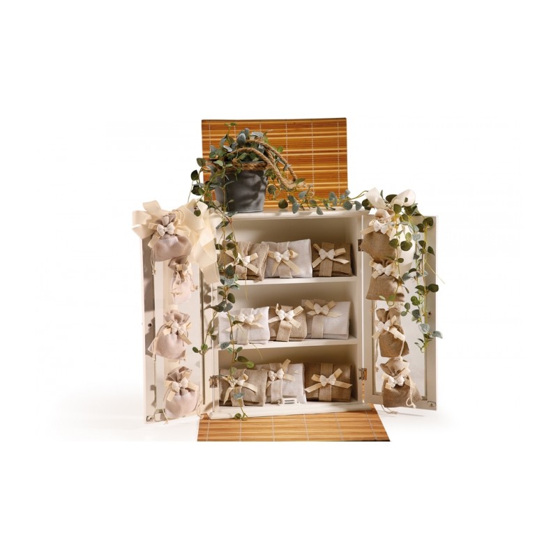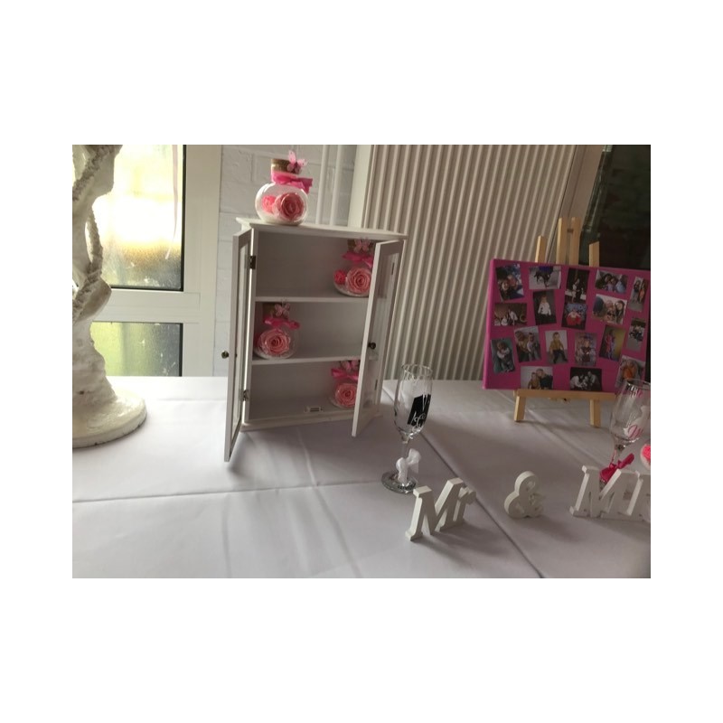 Petite armoire vitrée en bois blanc pour y mettre en valeur vos cadeaux invités...