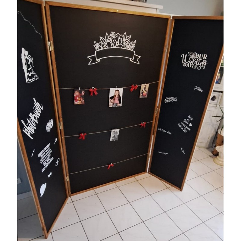 Mur Photobooth ardoise pour votre coin photo sur le thème champêtre ou romantique chic