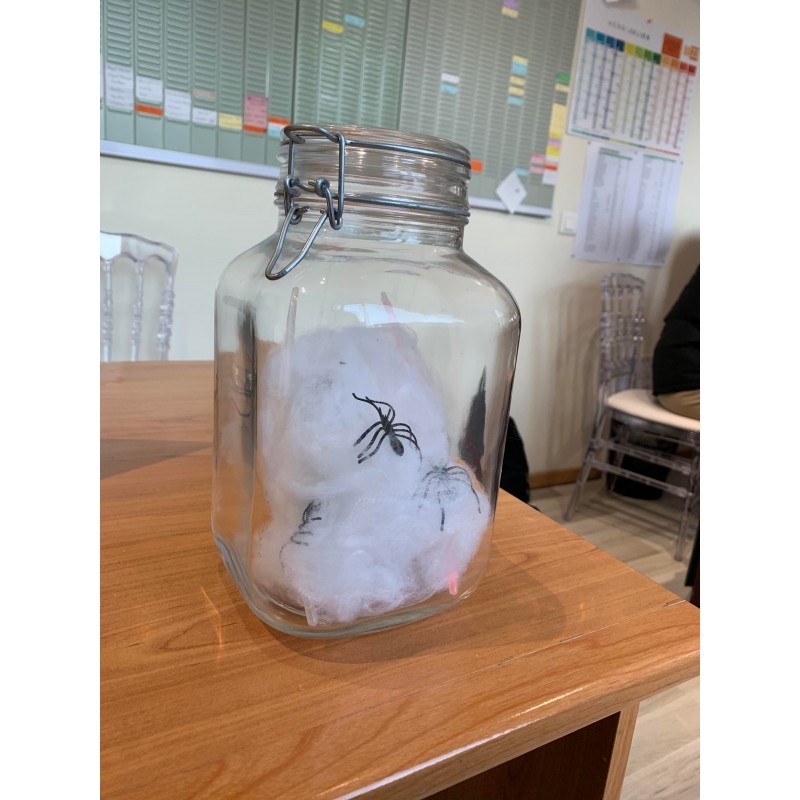 Bocal avec toiles d'araignées et araignées