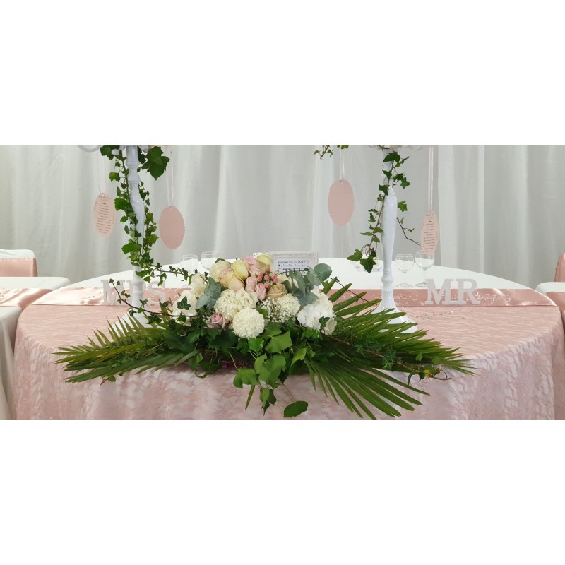 Vous pouvez la superposer au dessus d'une nappe blanche ou en retombant de moitié sur la table d'honneur...