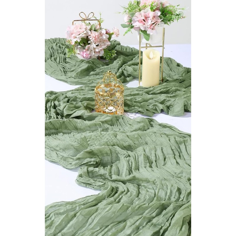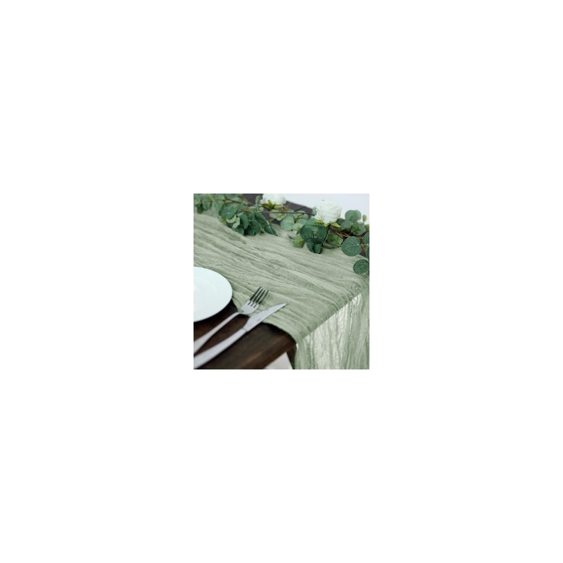 Chemin de table en gaze de coton vert sauge