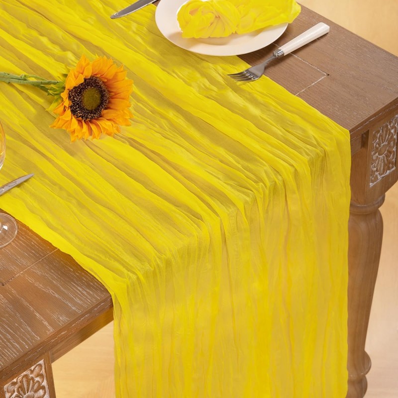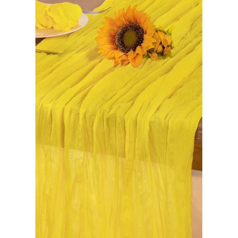 Chemin de table en gaze de coton jaune