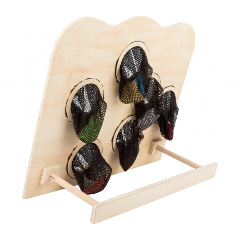 Jeu pédagogique et d'adresse où vous devez lancer les petits sacs dans les trous de la cible