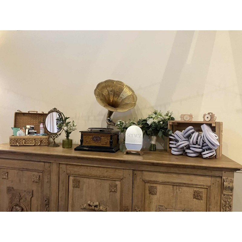 Ajoutez une véritable note rétro et authentique à vos événements avec notre phonographe ancien.