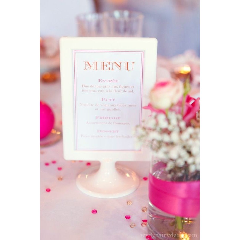 Idéal pour ajouter une touche final à votre décoration en y mettant le nom de la table et/ou le menu.