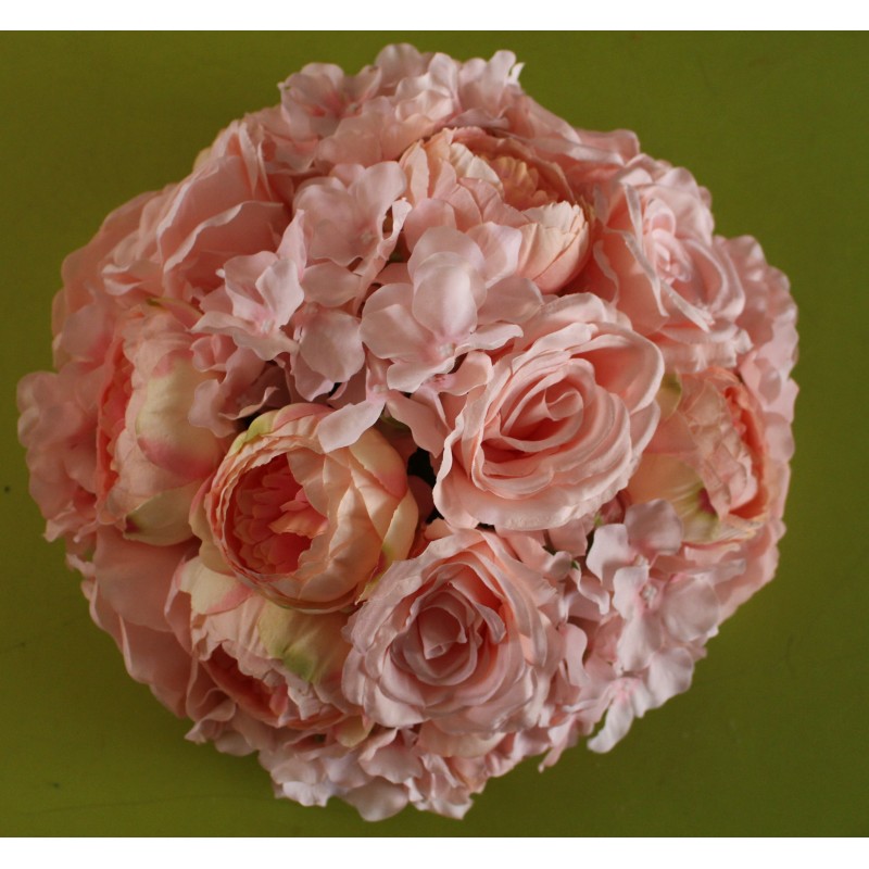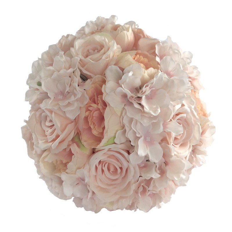 Boule de fleurs artificielle rose et pêche, diamètre 35cm.