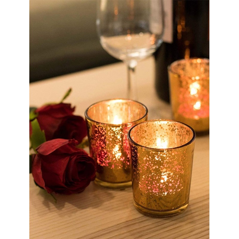 Photophore doré qui va diffuser une lumière tamisé et donner un effet romantique à votre décoration.