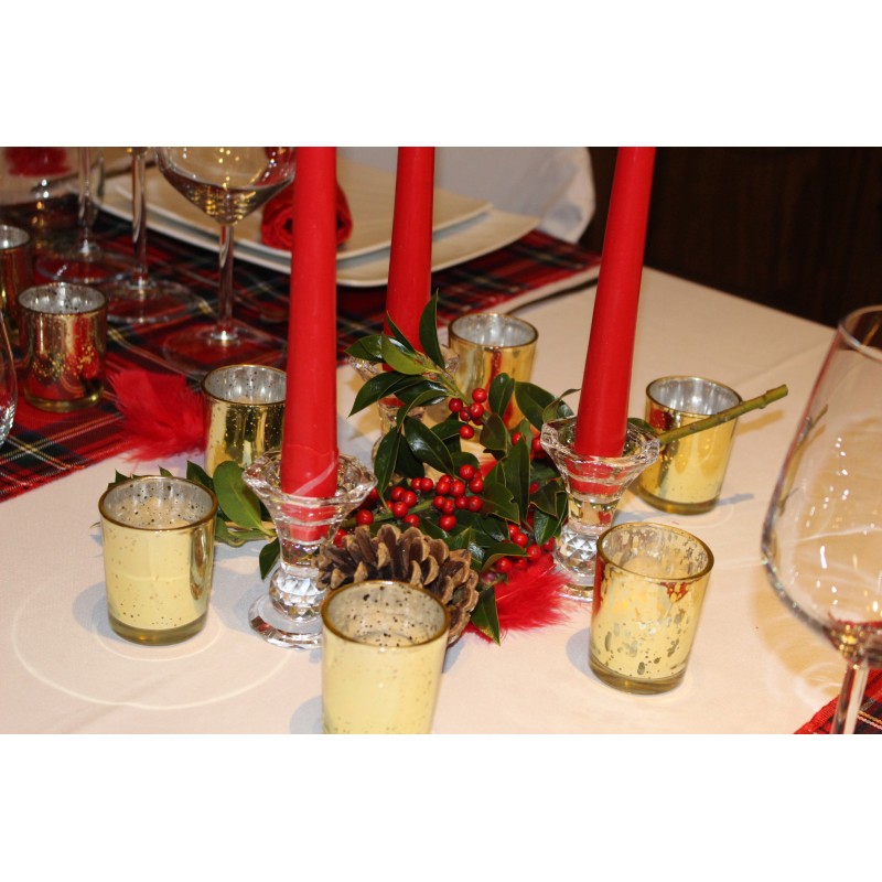 Placez quelques bougeoirs dorés sur les tables pour créer une atmosphère chaleureuse et inoubliable!!