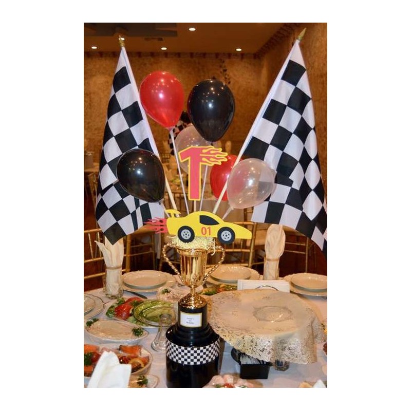 Drapeau damé pour une décoration top course de voiture à poser en centre de table