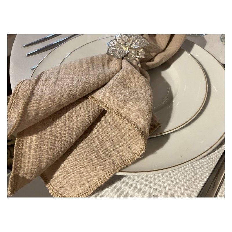 Serviette de table gaze de coton beige ficelle