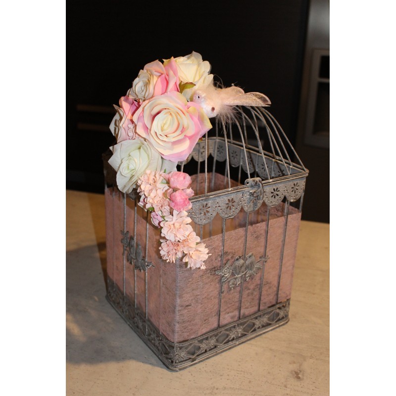 Cette jolie cage grise fleurie trouvera sa place dans votre décoration de table ou utilisé en urne...
