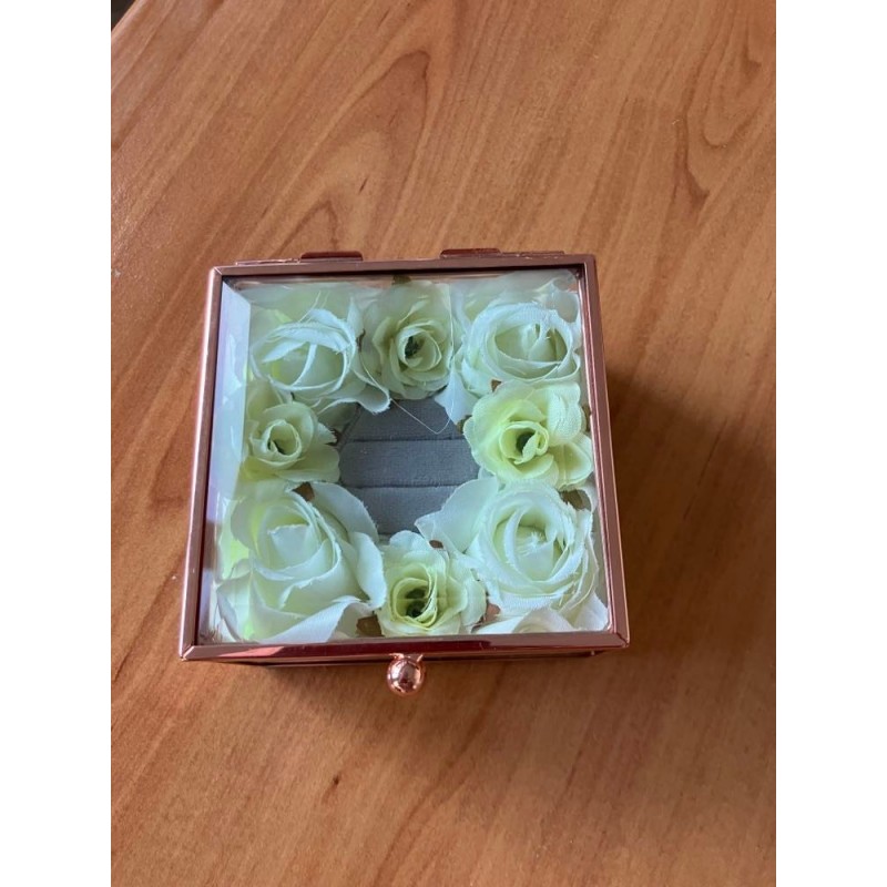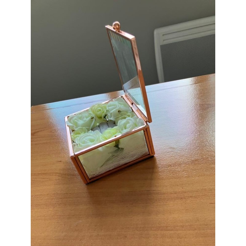 Boite en verre doré porte alliance personnalisable avec des roses aux couleurs selon votre thème