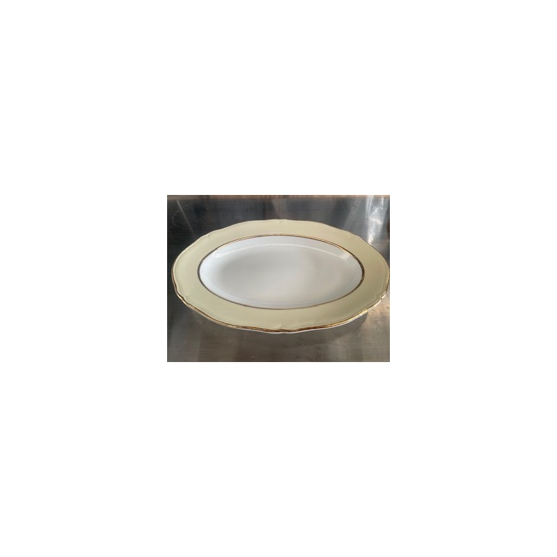 Plat géant vintage avec bord doré, idéal pour sublimer vos tables et buffets lors d’événements champêtres ou élégants.