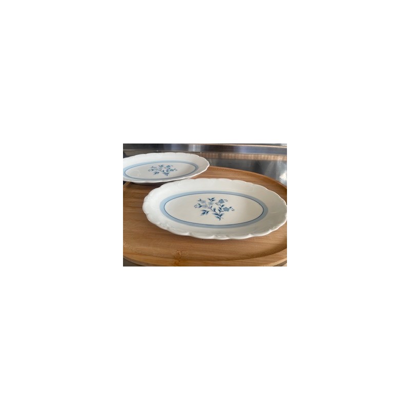 Plat ovale moyen « Gino » bleu ciel à motifs floraux, idéal pour sublimer vos tables lors d’événements champêtres ou élégants.