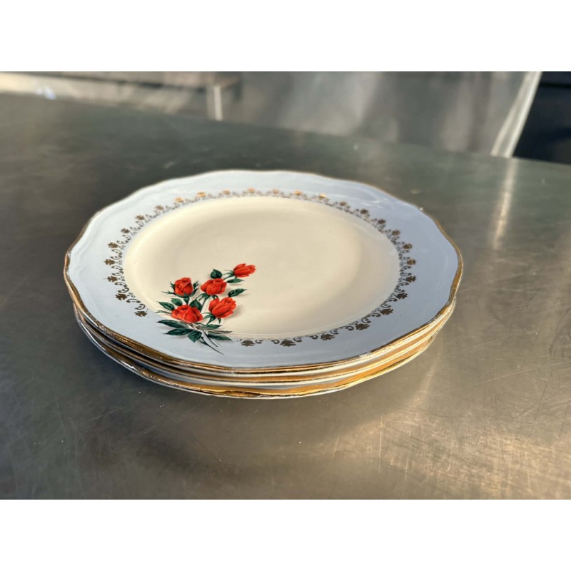 Assiette « Justine » à fleurs rouges, élégante et vintage, idéale pour sublimer vos tables lors d’événements champêtres ou raffinés.