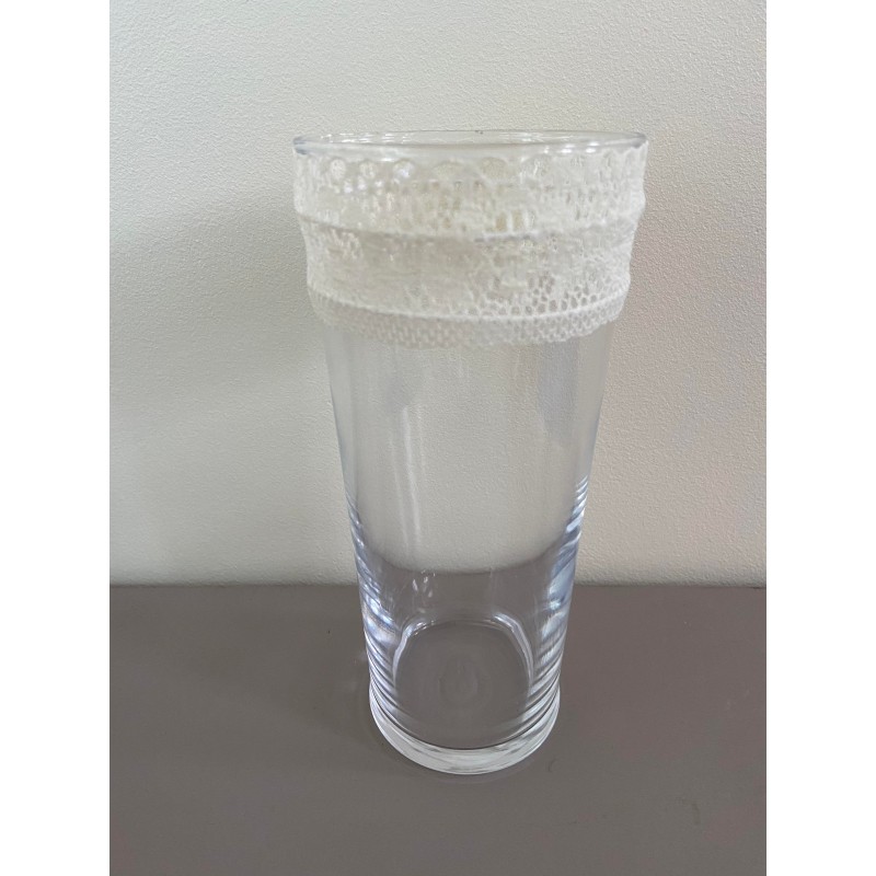 Vase transparent ruban blanc, jaune