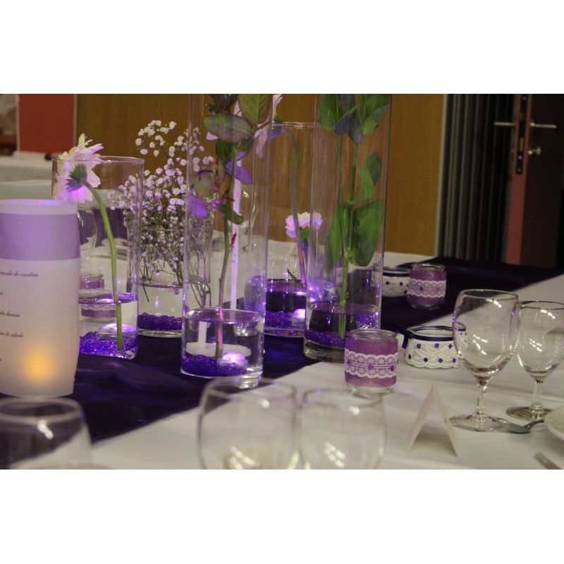 Pour une déco très chic qui va faire tout son effet en groupe de 3 ou plus... On peut le présenter avec des fleurs et leds submersibles ou de bougie flottante mais également avec du sable aux couleurs de votre décoration! Une infinité de possibilité de décoration de votre centre de table.